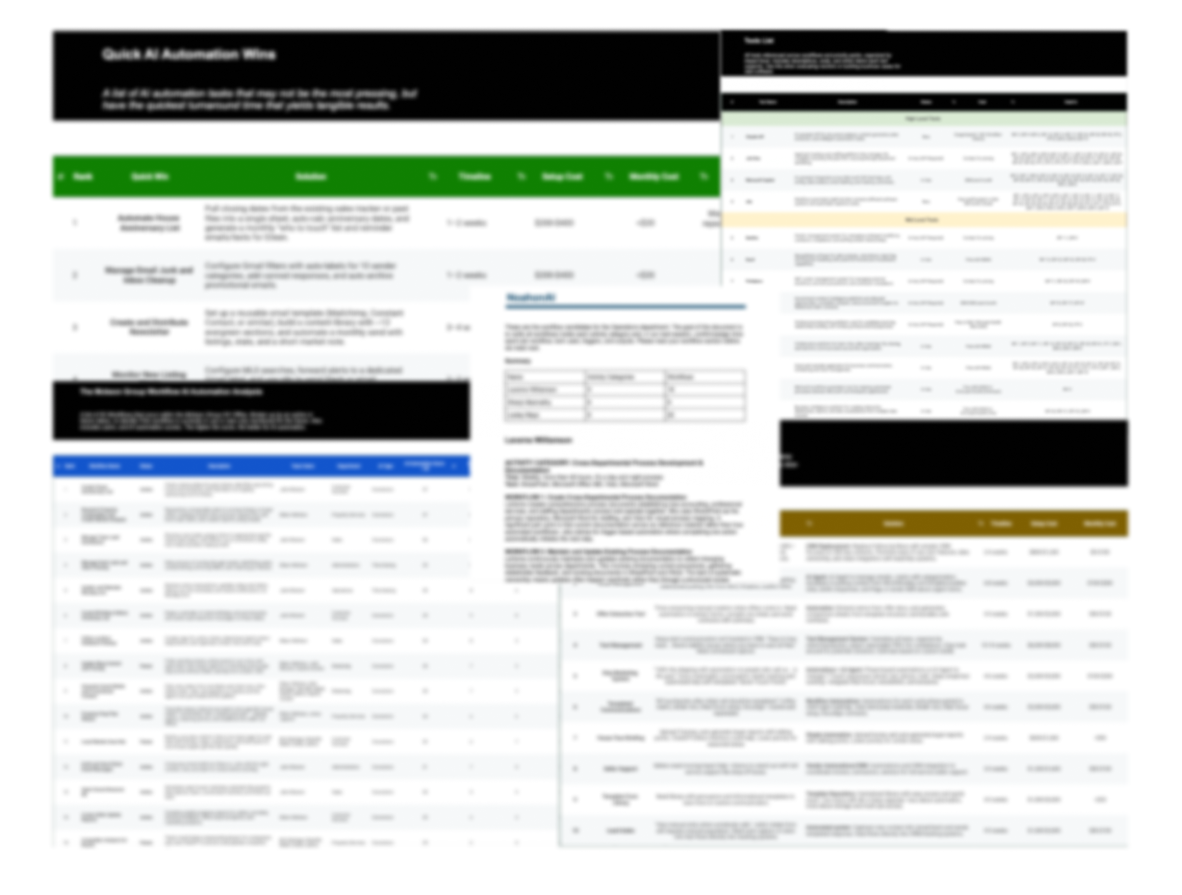 We are industry agnostic. We have done work across real estate, healthcare, legal, manufacturing, consulting, and AI focused teams. If you have a process that repeats, creates bottlenecks, or loses money through delay, we can help.