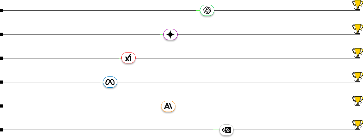 From Top to Bottom: Open AI, Google Gemini, xAI, Meta AI, Anthropic, NVIDIA.