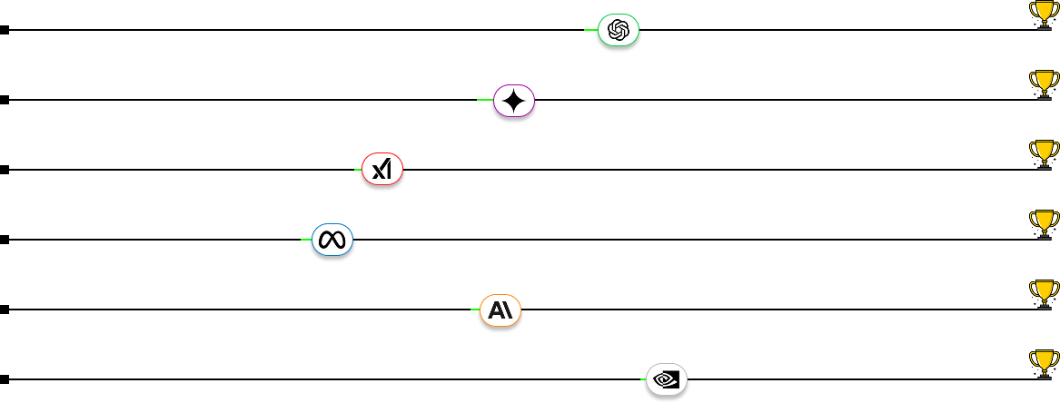 From Top to Bottom: Open AI, Google Gemini, xAI, Meta AI, Anthropic, NVIDIA.
