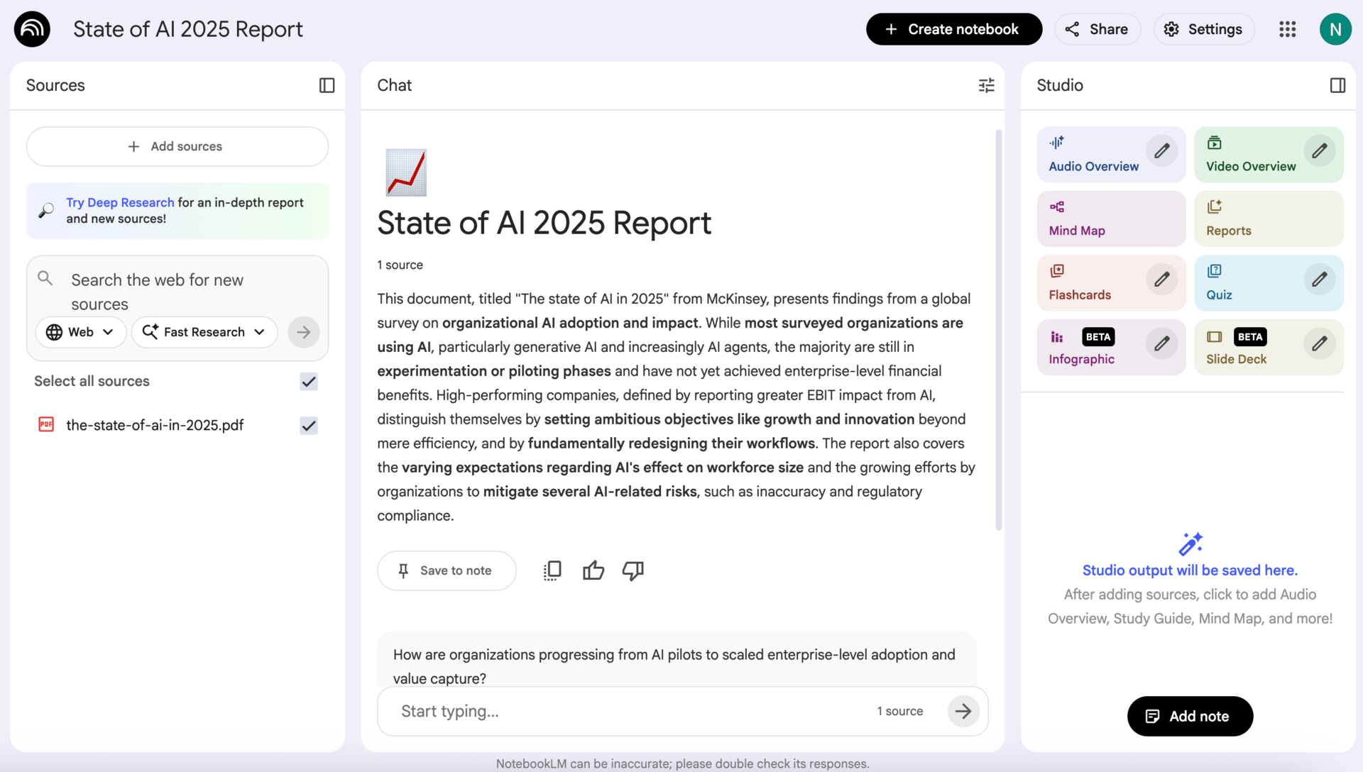 I provided it with the 2025 Mckinsey AI report from a few weeks back so I could dive in a bit deeper, here’s what it looks like: